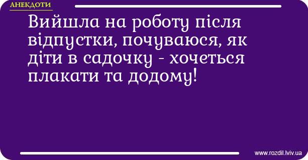 • Ласкаво просимо назад! Відпустка дала сили, а ми додамо позитиву.