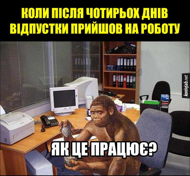 • Вітаю з виходом на роботу! Головне — згадати, де твоє місце й пароль від комп’ютера.